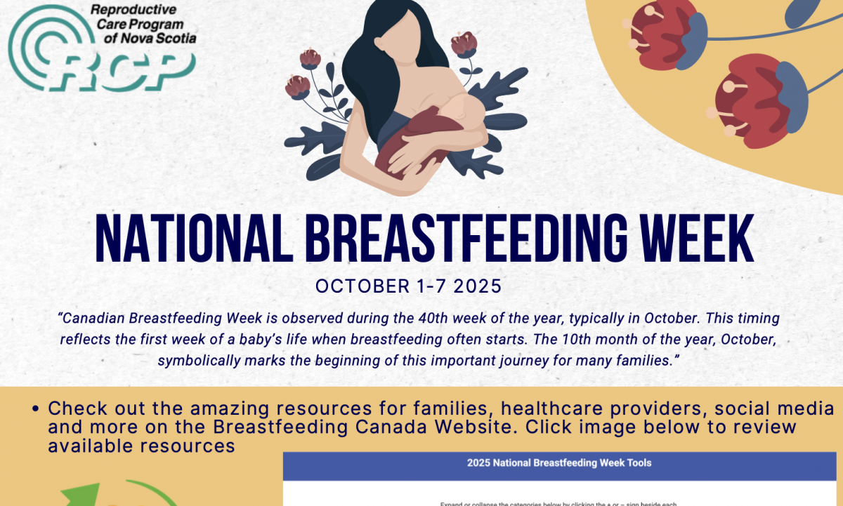 Please check out our informative poster with hyperlinks to the amazing Breastfeeding Committee for Canada Website's resources for families, healthcare providers and more. “Canadian Breastfeeding Week is observed during the 40th week of the year, typically in October. This timing reflects the first week of a baby’s life when breastfeeding often starts. The 10th month of the year, October, symbolically marks the beginning of this important journey for many families.”
